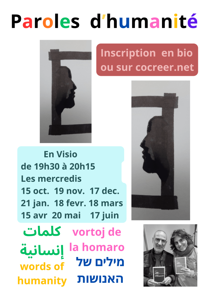 Ce mercredi 15 octobre, retrouvons-nous pour 45 minutes en visio, à 19h30, autour des sagesses juives et des sagesses musulmanes. Nous voulons échanger des paroles d’humanité, approfondir des thématiques profondément humaines.